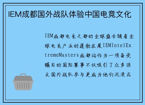 阅读IEM成都站:全球电竞浪潮中的文化交汇点 IEM(英特尔极限大师赛)作为全球顶尖的电竞赛事之一,其落地成都不仅推动了本地电竞产业的发展,更在文化层面产生了深远影响。本文将从电竞文化传播、城市形象塑造、...